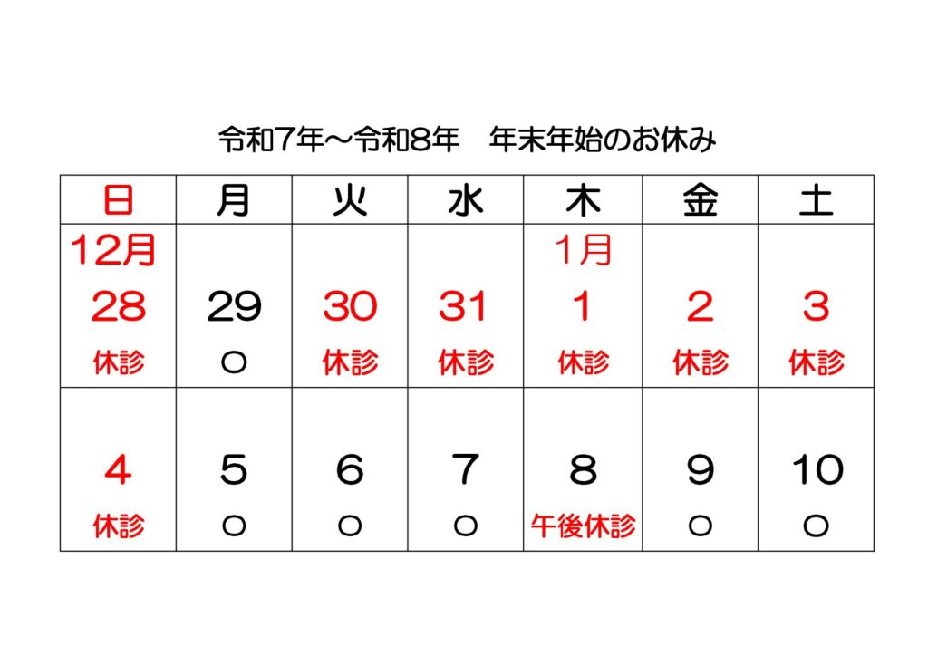 令和7年~令和8年 年末年始につきまして