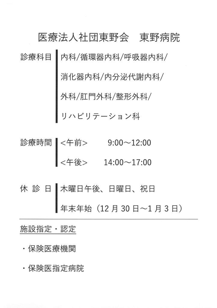 • 初診の方は午前11:30・午後16:00までに来院をお願いいたします。